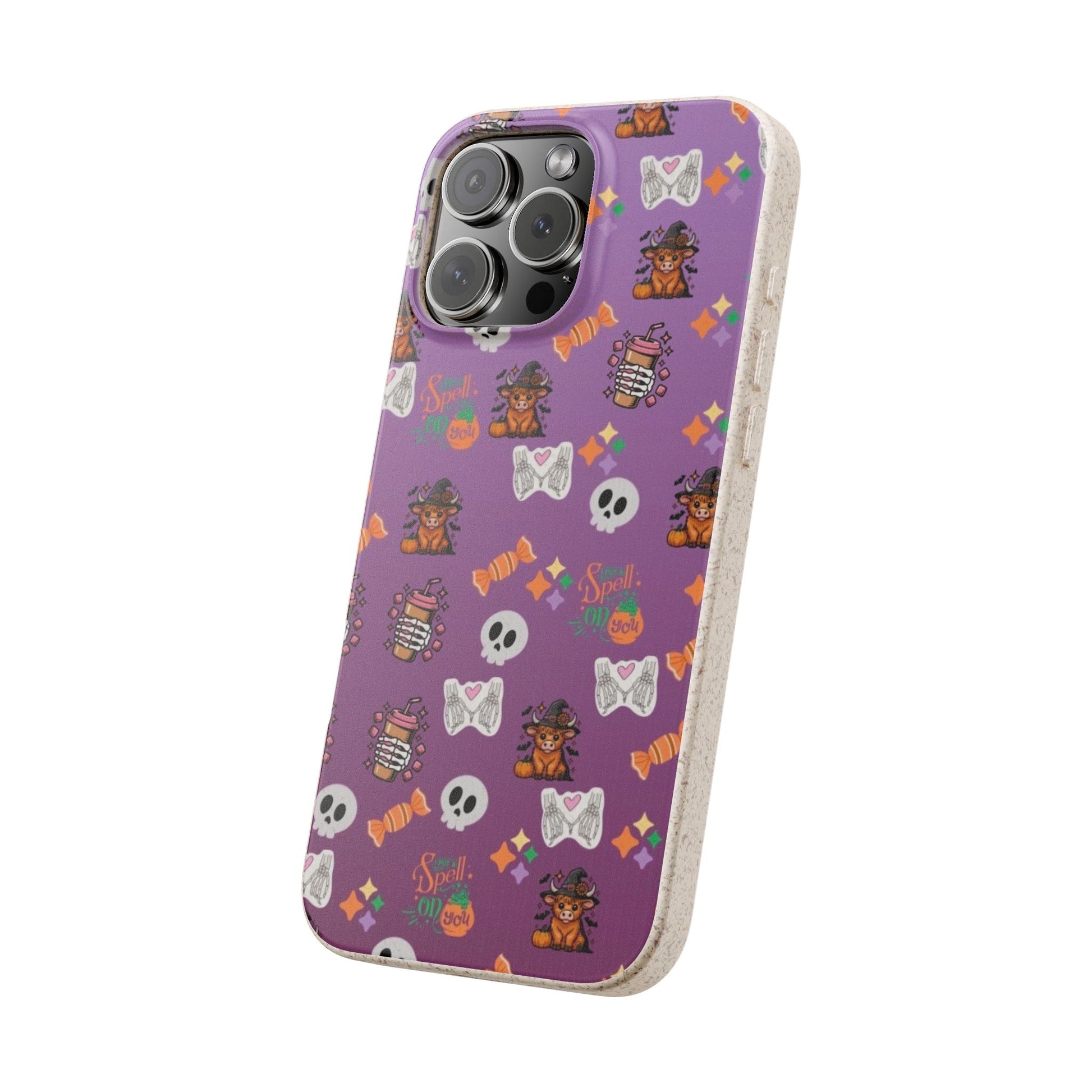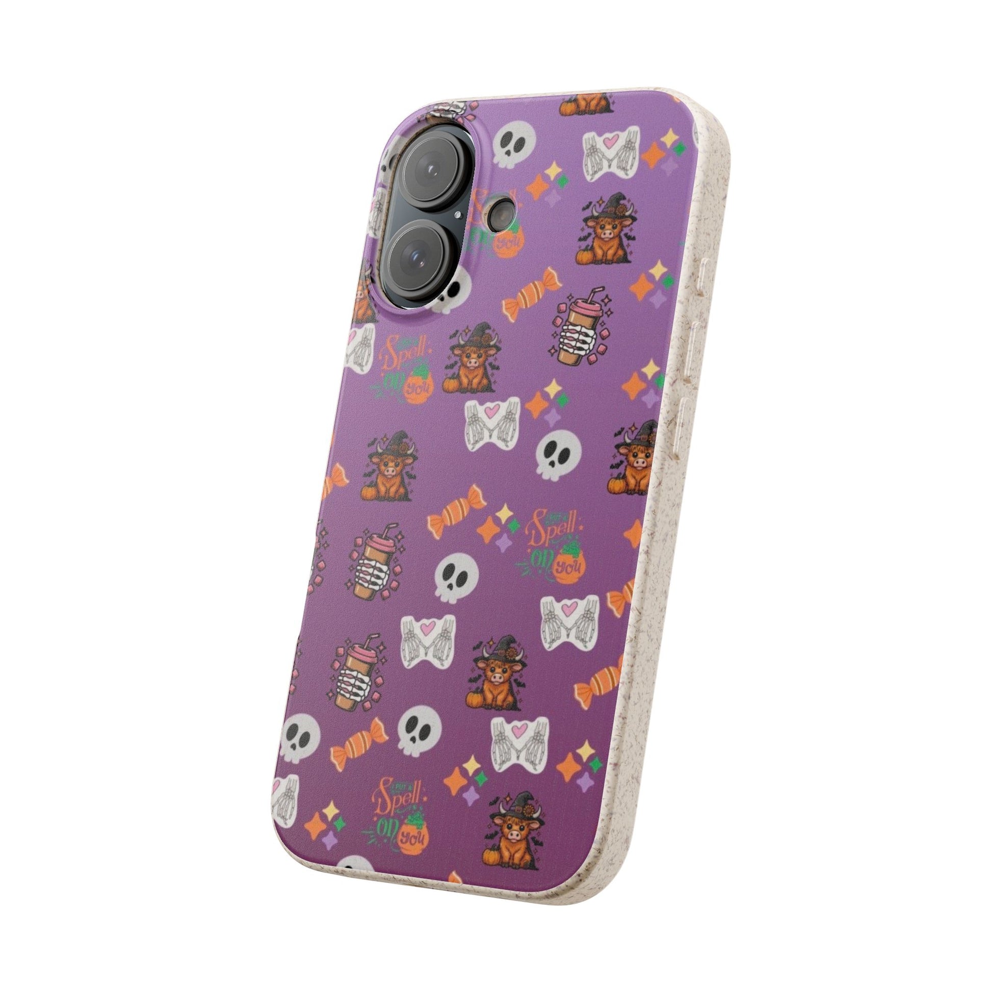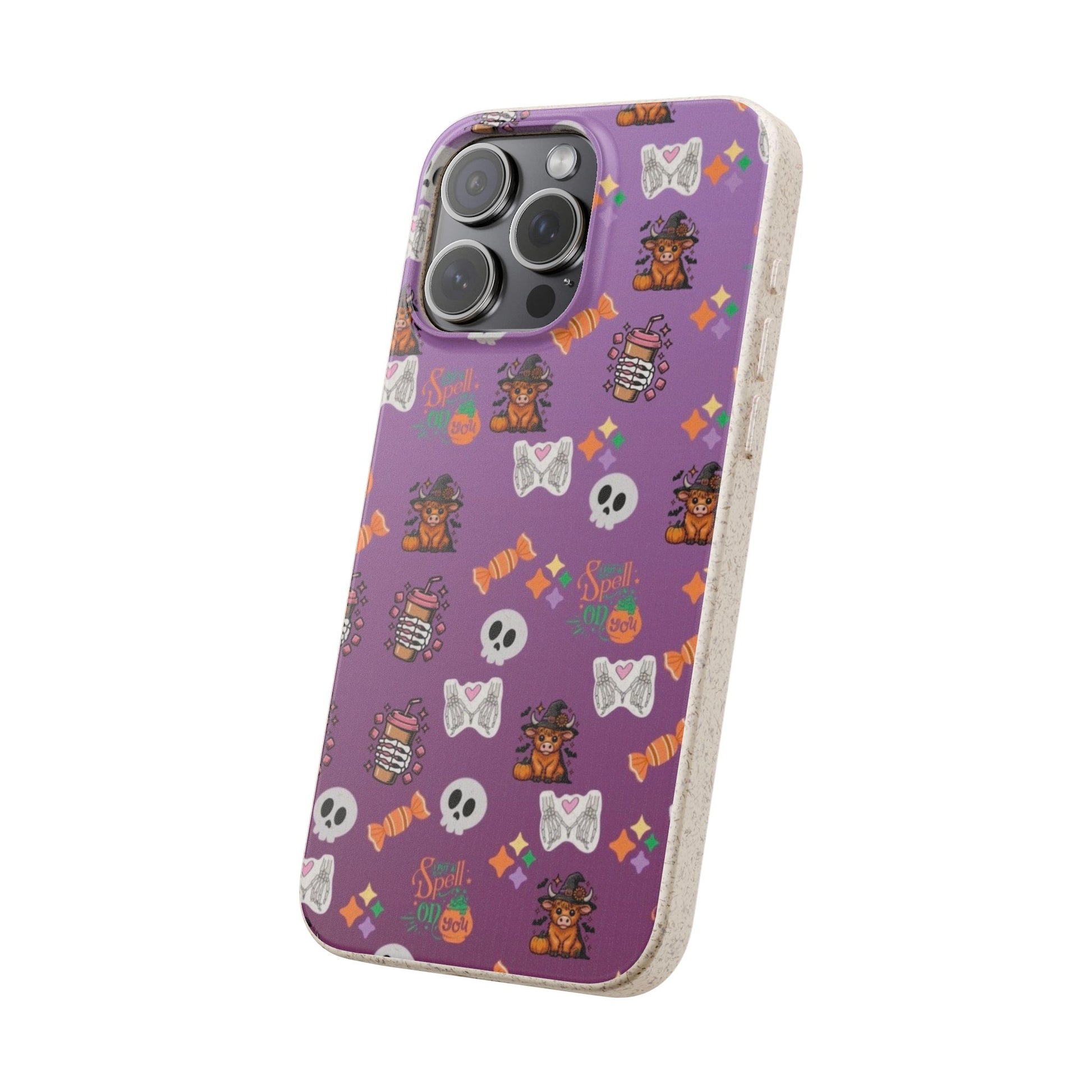 Spell On You Halloween Teddy Bear iPhone Case | Cute Witch Bear, Candy and Skull Pattern | Purple Aesthetic Protective Phone Cover